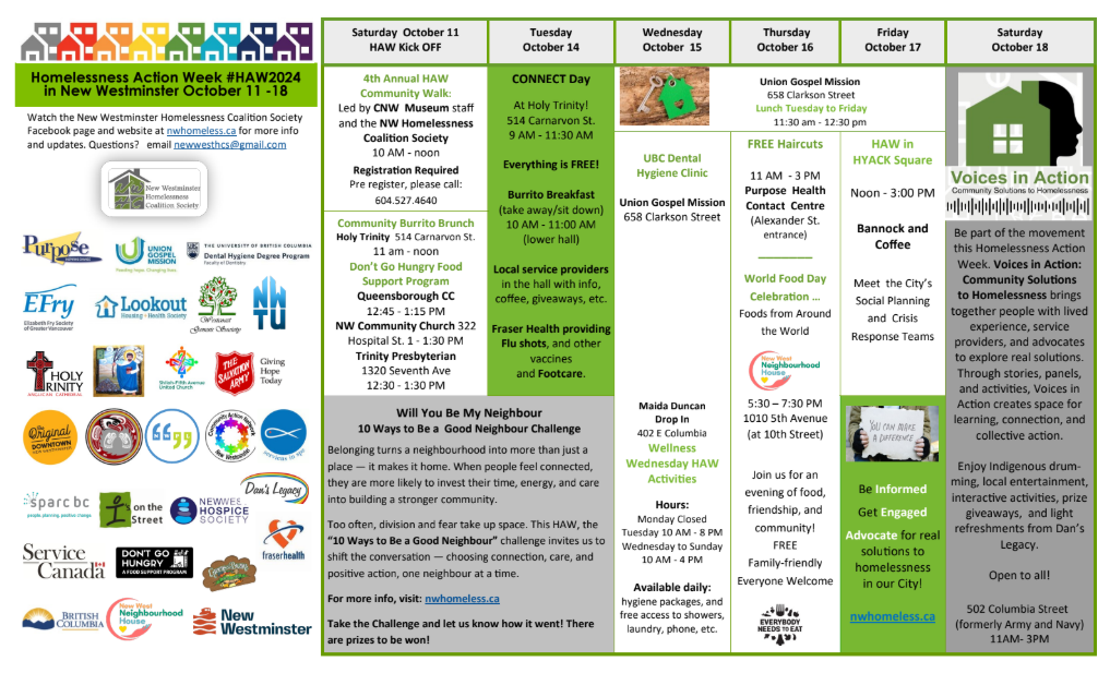 This is what HAW2024 looked like in New Westminster! A big thank you to all the people and organizations that worked with us to plan such a great week!